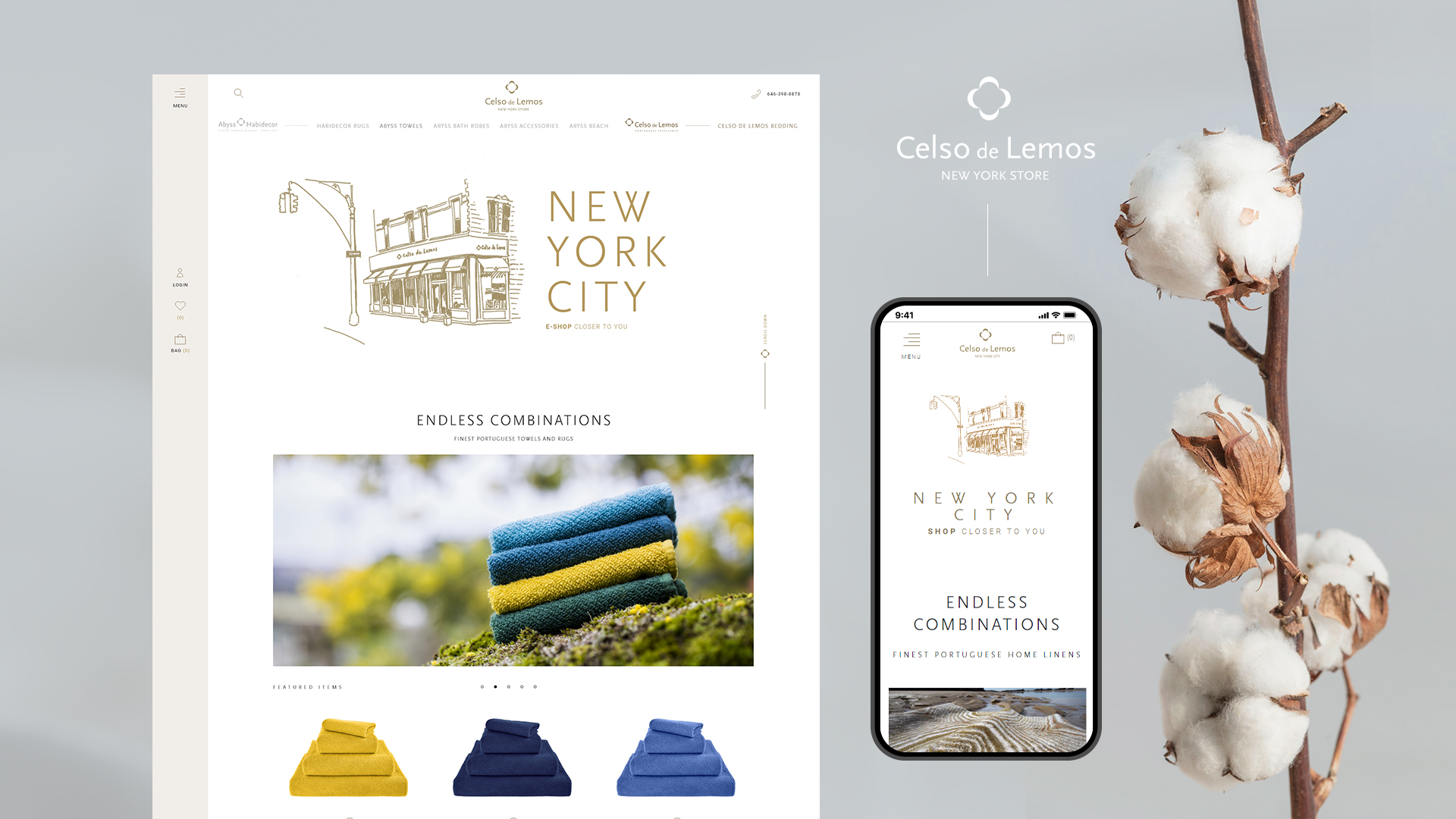 O e-commerce da Celso de Lemos New York City comunica com o outro lado do Atlântico. É um website totalmente alinhado com a estética e presença digital da marca, que também funciona como catálogo de produtos das marcas Abyss Habidecor e Celso de Lemos e permite a compra destes produtos portugueses de excelência. Esta solução promove a divulgação de conceito e a criação de pontes de contacto com a experiência em loja física. Clique no link para conhecer o projeto online: https://www.celsodelemosnyc.com/